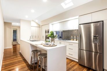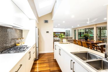 Complete renovation with high-end finishes including extensive external works which involved levelling the back yard, extending and replacing the deck, installing stairs to the garden and cantilevered garden seating and building retaining walls. Natural Australian hardwoods used throughout.