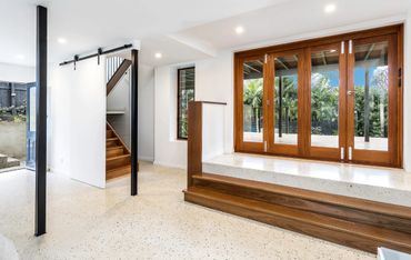 A new story was added under this Queenslander, requiring excavation and replacement of concrete posts and the top level was completely renovated.